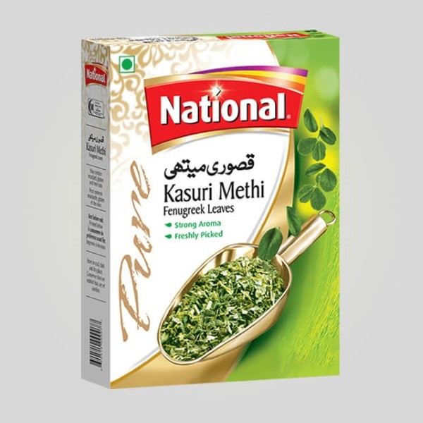 National Kasuri Methi (fenugreek leaves) are used for flavoring various dishes. It’s pure and freshly packed that add a rich aroma to all dishes. Apart from the dried leaves, the green leaves and the seeds are also commonly used while cooking. National Kasuri Methi 50g comes packaged in a bag and sealed in a box.
